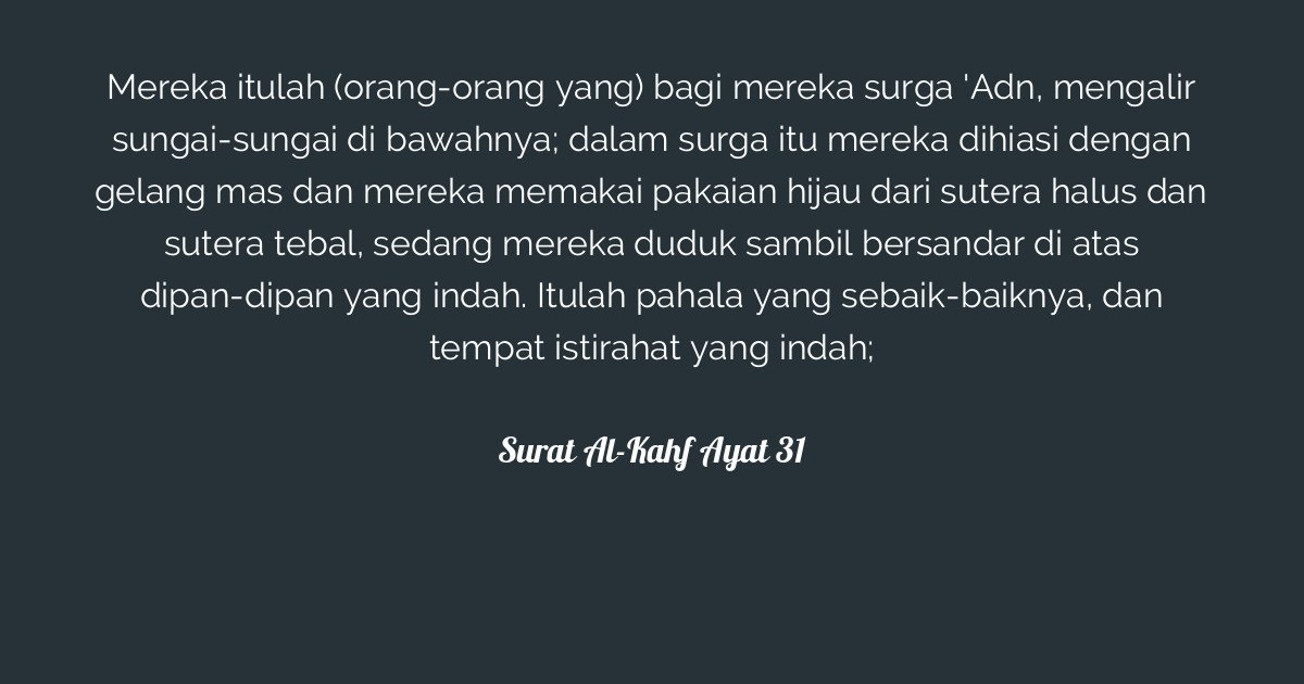 Qs al kahfi adalah surat ke 18 dalam kitab suci al quran. Maksud dijaga dari godaan dajjal, ia tidak akan meninggalkan agamanya dengan menjadi pengikut dajjal. Al kahfi artinya gua dan ashhabul kahfi yang berarti penghuni gua yang dijadikan sebagai nama surat ini. Baca surat al kahfi lengkap bacaan arab, latin & terjemah indonesia. Surat ini diturunkan di kota mekah dan disebut dengan surat makiyyah.